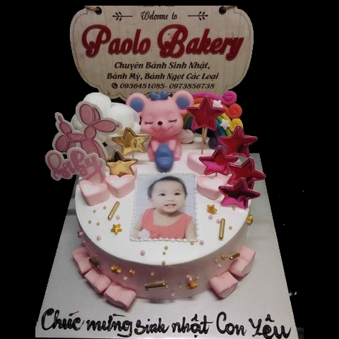 Bánh kem sinh nhật với chú Chuột dễ thương cho bé gái tuổi Tý, kèm hình con yêu rất dễ thương.