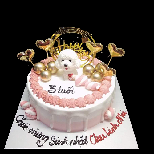 Bánh sinh nhật bé gái trang trí chó trắng BG16